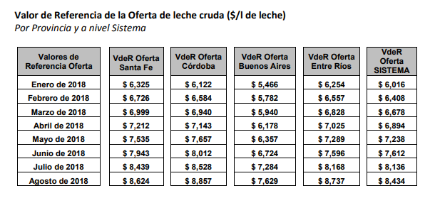 Expresa la necesidad de ingreso por litro de leche del sector de producción primario, tomando como unidad de análisis el tambo. Para su cálculo, se consideran los gastos (directos y de estructura), las amortizaciones y una tasa de interés. Para llevar adelante la estimación del VdR Oferta, se considera la estructura de costos de los sistemas de producción representativos de las cuencas lecheras de Córdoba, Santa Fe, Buenos Aires y Entre Ríos, que surgieron de talleres donde participaron referentes del sector primario de producción de leche de cada provincia.