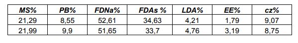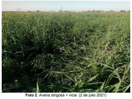 En el INTA Rafaela se realizan ensayos para evaluar las características de los distintos verdeos invernales y su utilización para la confección de silaje. Los cultivos de siembra bien temprana pueden estar aportando, en función del tipo de avena, de las condiciones climáticas y la nutrición del cultivo, volúmenes de forraje entre 4000 y 7000 kg de MS/ha. En el cuadro 1 se indican valores de calidad del forraje (%PB, FDN, FDA, LDA EE y Cenizas) de Avena strigosa + vicia florecida (18 de julio de 2021)