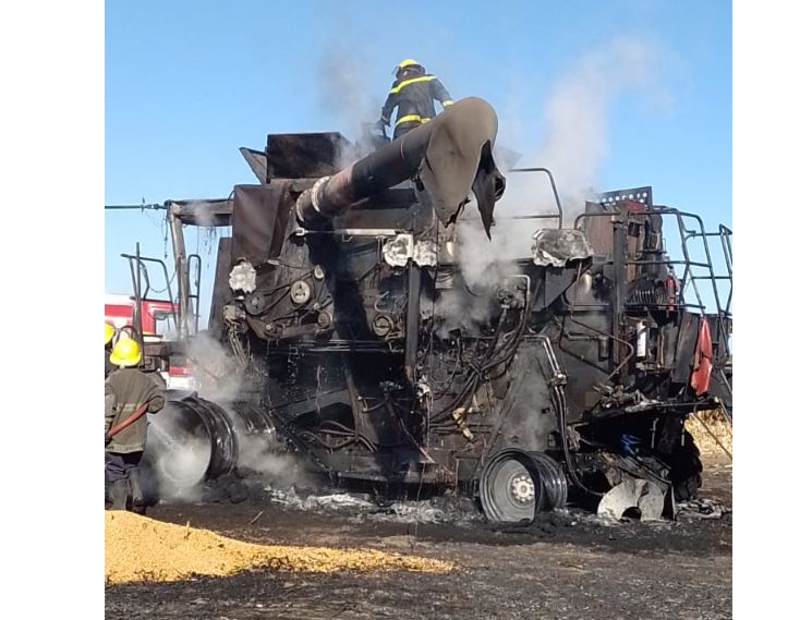 Fue el martes 2 de mayo, pasadas las 15 horas cuando sonó la sirena de bomberos voluntarios de Rivadavia en la ciudad de Trenque Lauquen en la provincia de Buenos Aires por el incendio de una cosechadora en el establecimiento rural «Ojo de Agua». Agradecemos a Alejandro Sánchez por el video.