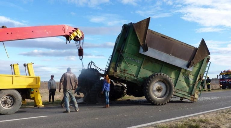 El tránsito permaneció cortado hasta que una pesada grúa que retiró la tolva que estaba sobre sus ruedas y colocó el tractor en su posición de marcha ya que ocupaba gran parte de la ruta.