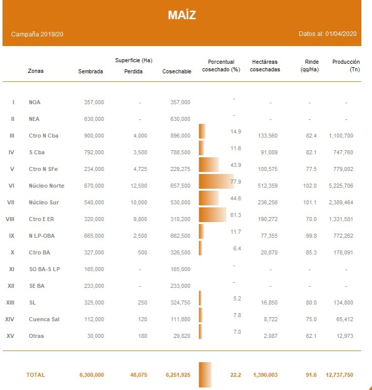 Hacia el NOA, aún parte de los lotes de maíz mantiene una condición regular producto de la falta de lluvias y las elevadas temperaturas de las últimas semanas de marzo. Sobre la región del NEA, las precipitaciones han repuesto humedad en parte de los cuadros de segunda ocupación sembrados sobre girasol.