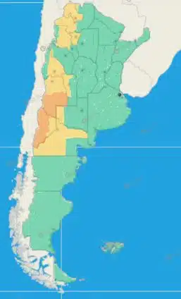 Tucumán: Burruyacú – Capital – Cruz Alta – Famaillá – Graneros – La Cocha – Leales – Simoca – Trancas – Yerba Buena – Zonas bajas de Chicligasta – Zonas bajas de Juan Bautista Alberdi – Zonas bajas de Lules – Zonas bajas de Monteros – Zonas bajas de Río Chico – Zonas bajas de Tafí Viejo – Zona montañosa de Chicligasta – Zona montañosa de Juan Bautista Alberdi – Zona montañosa de Lules – Zona montañosa de Monteros – Zona montañosa de Río Chico – Zona montañosa de Tafí Viejo – Zona montañosa de Tafí del Valle – Zona montañosa de Andalgalá – Zona montañosa de Santa María – Valles de Santa María – Valles de Tafí del Valle